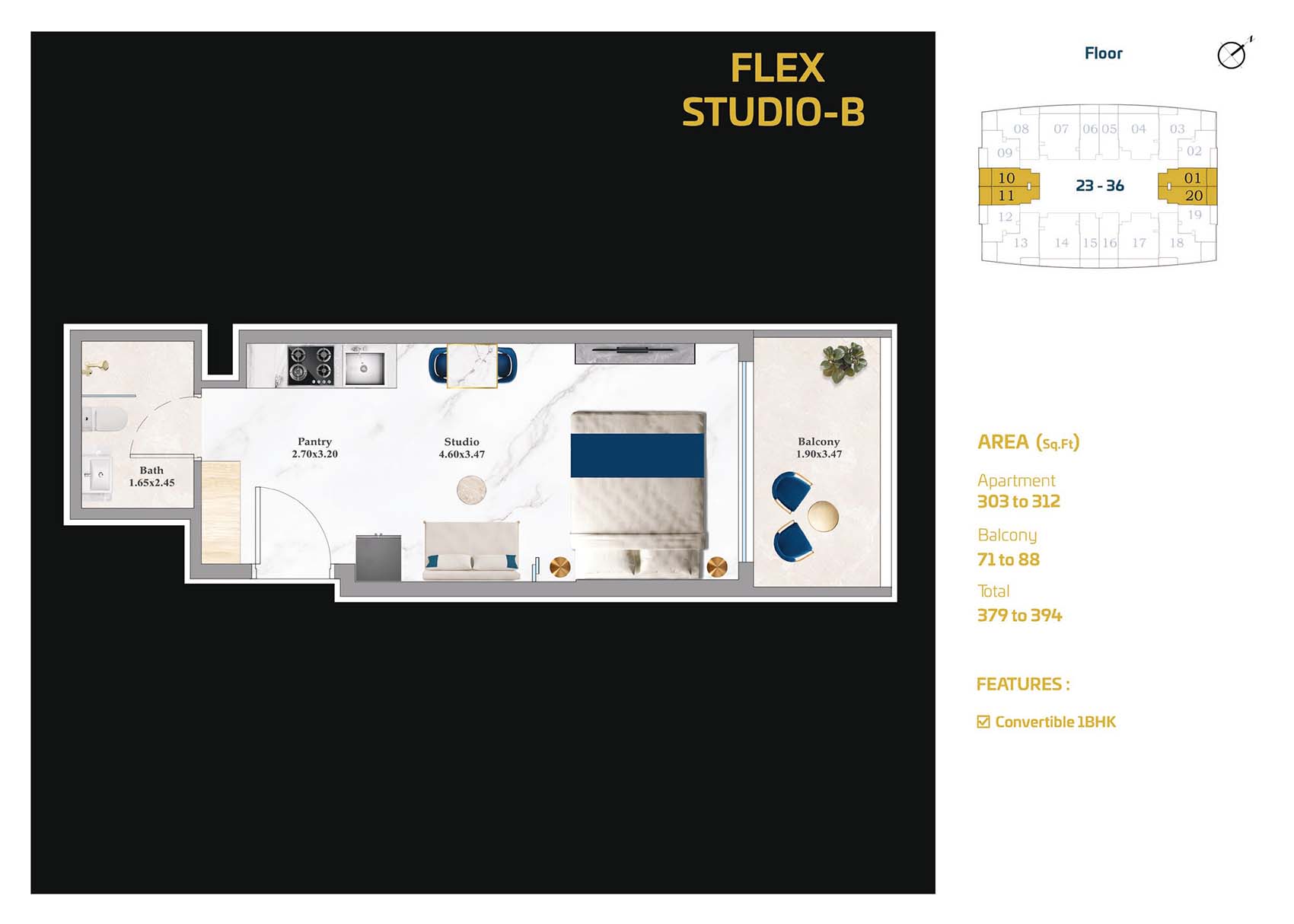 | Floors 23-36 to Floors 23-39 | – | Type B to Typical Floor | 0.00 to 394.00 Sq Ft | Apartment | See floor plan |