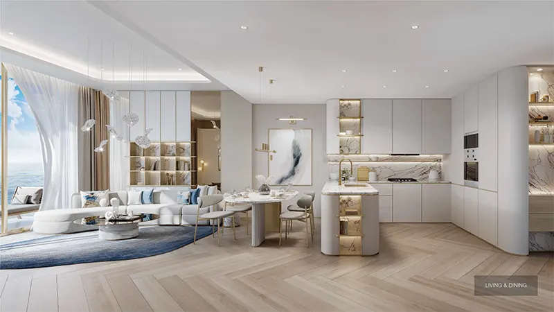 With its close proximity to 21 kilometres of pristine beachfront and a breath-taking sunset view, residents are enveloped in the serenity of nature while being only moments away from the bustling city. Whether you are enjoying a peaceful evening in the zen garden or hosting a barbecue with friends by the pool, the residence provides spaces that cater to every aspect of modern living. The building’s design emphasizes harmony and balance, with neutral tones and gold accents creating a soothing atmosphere throughout. Large windows flood each apartment with natural light, ensuring that every room is a sanctuary where residents can unwind and enjoy the surrounding beauty.