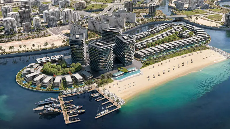 The super theme Inspired Island architecture offers four extravagant residential buildings that rise 13 floors from the ground as they rest atop a smooth underground base. The purpose-built island features a total of 352 apartments and 96 private villas that established itself as a modern design and architectural achievement. Every structure displays a dominant stance which represents the organization’s historic reputation for visual dominance. The waterfront design represents more than modern architecture because the builders crafted it specifically to assert itself while maintaining natural environmental harmony. This built replica of a BRABUS supercar manifests itself through audacious design while being unapologetic in its approach for exclusive customers seeking perfection.