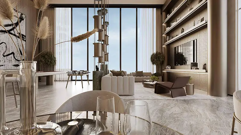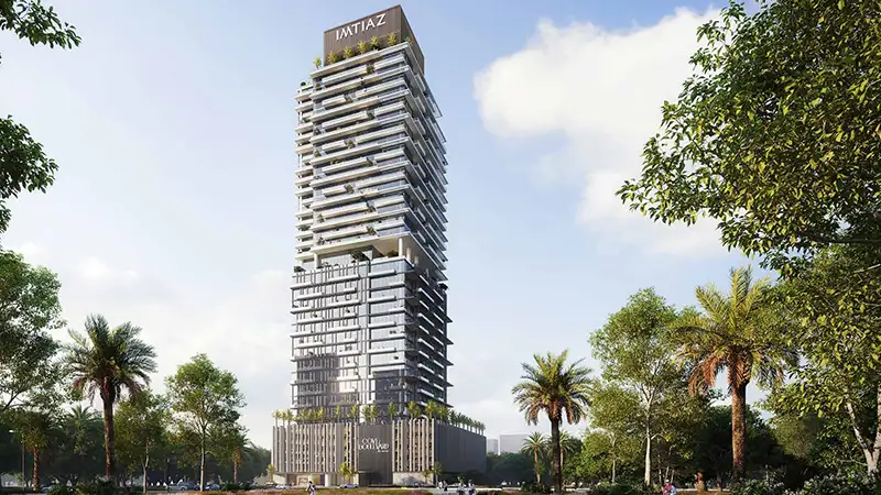 Cove Boulevard at Dubailand Residence Complex (DLRC) is introduced as an astonishing residential complex by Imtiaz Developments, which transforms sophisticated bedroom apartments. This high-rise tower presents itself above residential levels as a masterpiece which provides an integrated lifestyle experience that unites luxury with convenience and tranquillity for residents seeking such balance. The boulevard design façade presents an architectural design that uses light-filtering techniques while offering residents spectacular views across Dubai’s developing skyline.