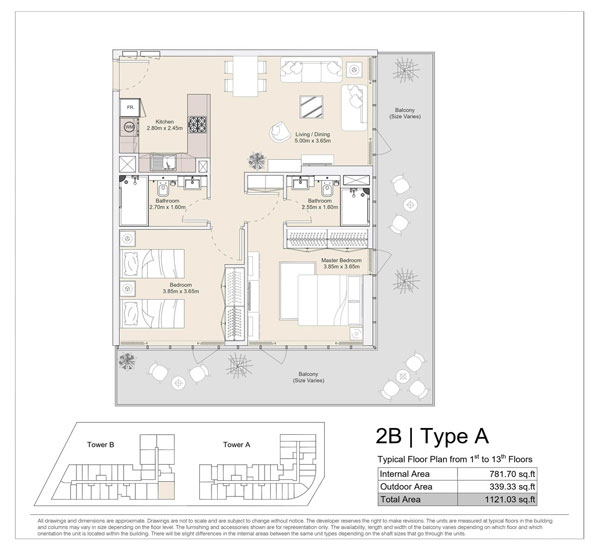 | 2 Bedroom | 2 BR, Type A, Typical Floor Plan from 1st to 13th Floors to 2 BR, Type H, 1st Floor | 771.14 to 1393.79 Sq Ft | Apartments | See floor plan |