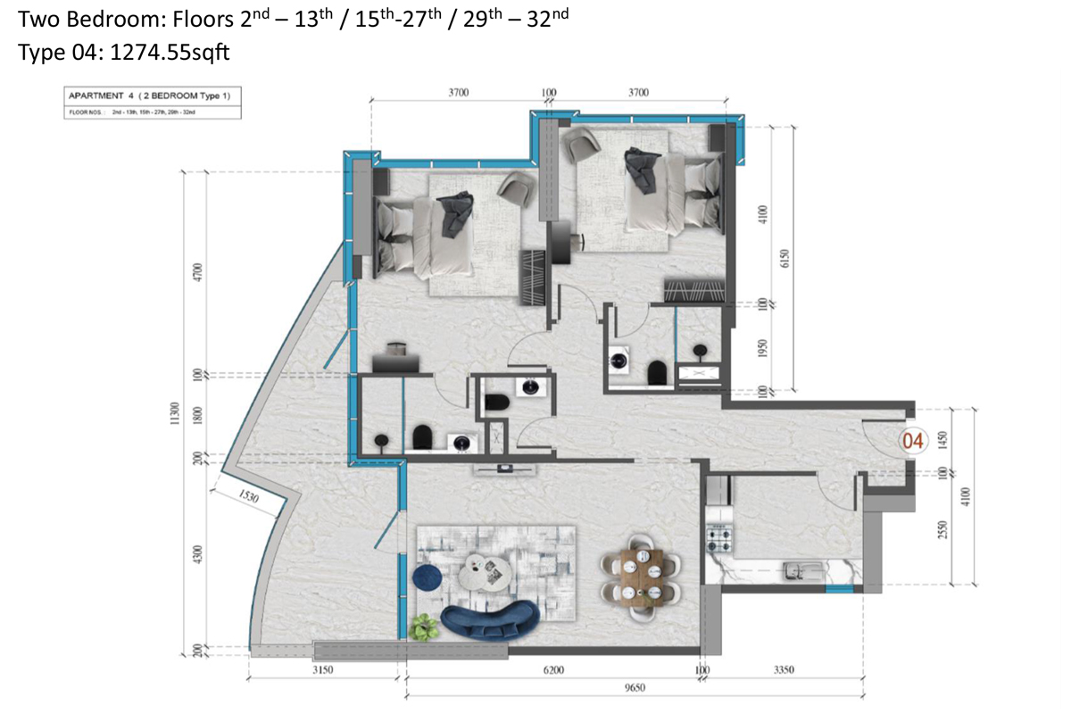 | 2 Bedroom | – | Type 1 to Type 2 | 1265.94 to 1274.55 Sq Ft | Apartment | See floor plan |