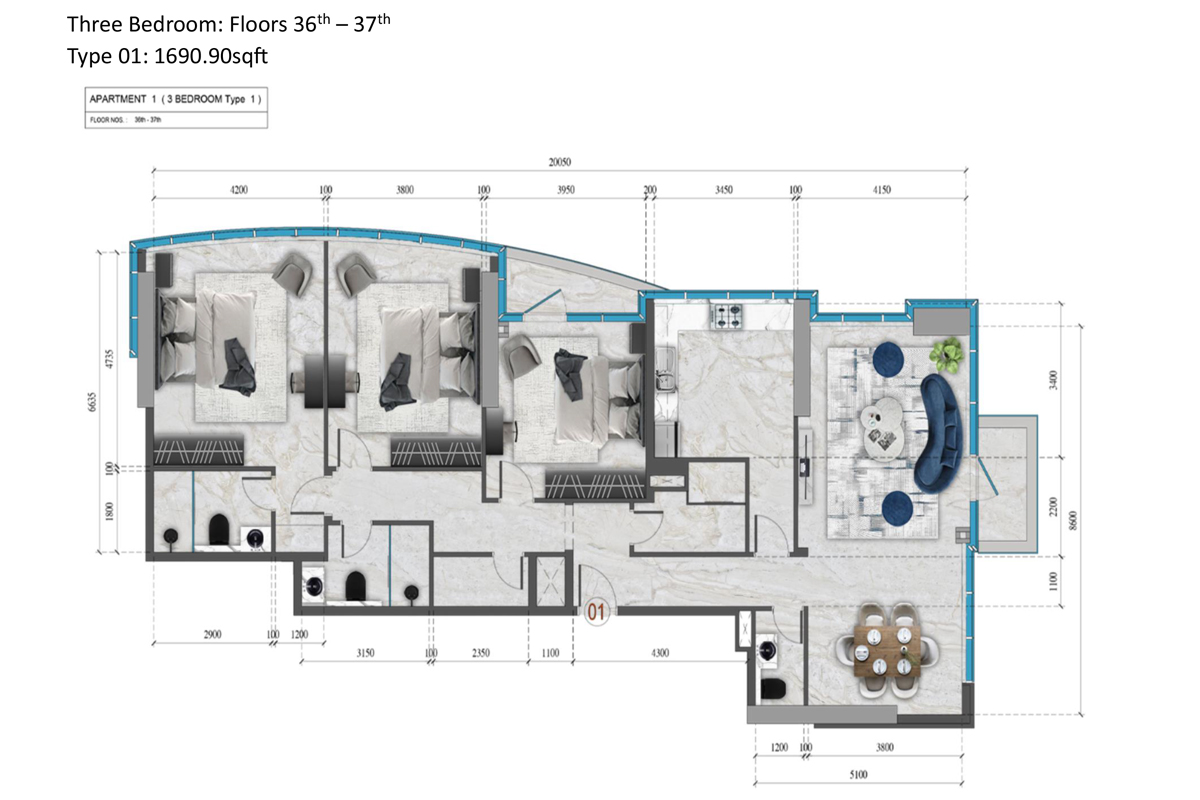 | 3 Bedroom | Type 1 to Type 4 | 1617.06 to 1690.90 Sq Ft | Apartment | See floor plan |